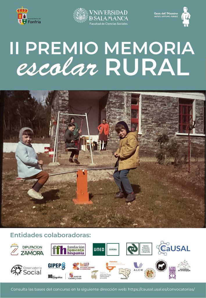 El Ayuntamiento de Fonfría, gracias a la coordinación técnica que le prestan la Universidad de Salamanca y la Cátedra Población, Vinculación y Desarrollo (UNED Zamora), así como la colaboración desinteresada de distintas asociaciones culturales de la comarca de Aliste (Zamora) y de Miranda do Douro, viene convocando desde 2023 el Premio Memoria Escolar Rural. Este proyecto se materializa gracias al patrocinio de la Diputación Provincial de Zamora y de la Fundación Fomento Hispania, con el objeto de recuperar, visibilizar y poner en valor los testimonios de quienes han sido escolares o docentes en el mundo rural ibérico.